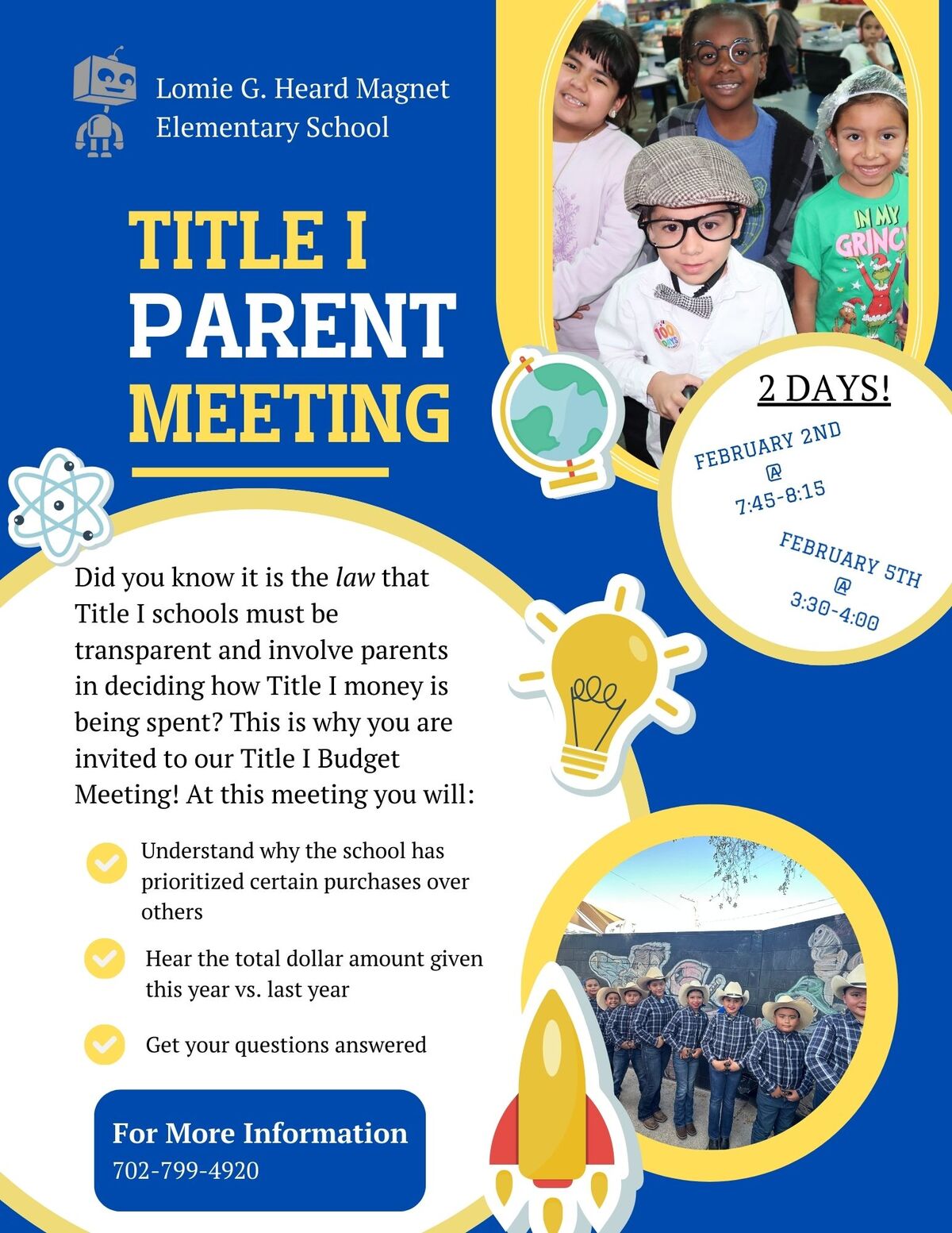 Lomie G. Heard Elementary, the Clark County School District's premier K-5 magnet school, specializes in coding and robotics. Since 2017, our mission has been to provide truly personalized learning. We meet students at their individual level, offering rigorous, hands-on activities that empower them to master learning targets at their own pace. This tailored approach ensures all students build a strong foundation in both core academics and technology.